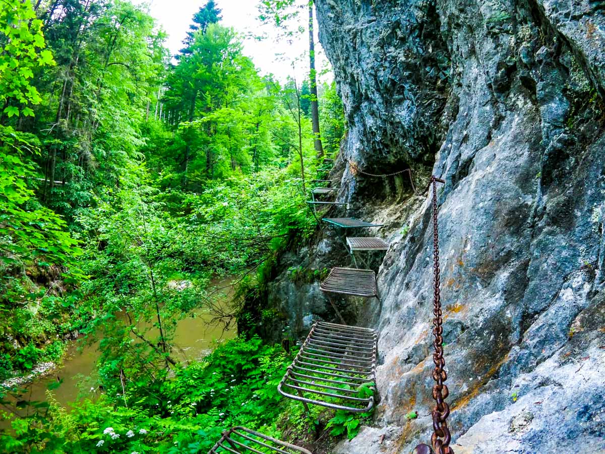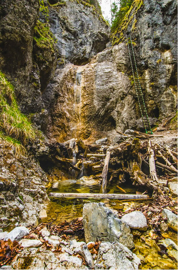 Fontos: ez nem via ferrata és nem alpinizmus, hanem egy technikás, de élvezhető szurdoktúra, ahol a biztosított létrák, fémtálcák és láncos szakaszok adják az út izgalmát. A megfelelő túracipő és a tudatos tempó itt is kulcsfontosságú. A program során sisakot biztosítunk, és a haladást a csoport dinamikájához igazítjuk, hogy mindenki magabiztosan tudjon mozogni ebben a változékony tavaszi környezetben.